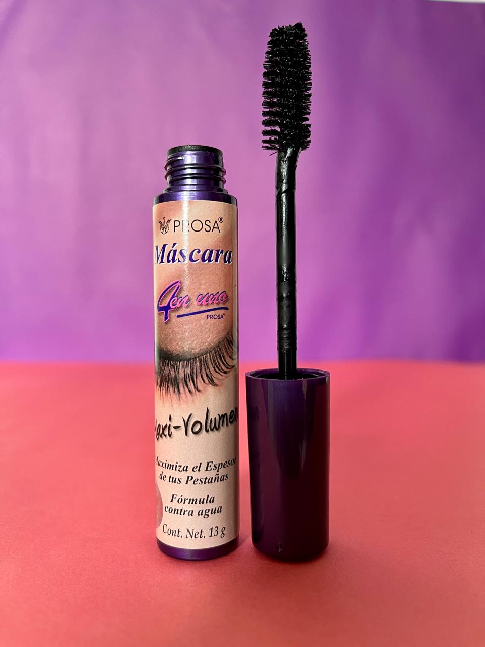 La pestañina Prosa Maxi-Volumen ofrece volumen extremo, larga duración y un acabado intenso sin grumos, resaltando tu mirada.