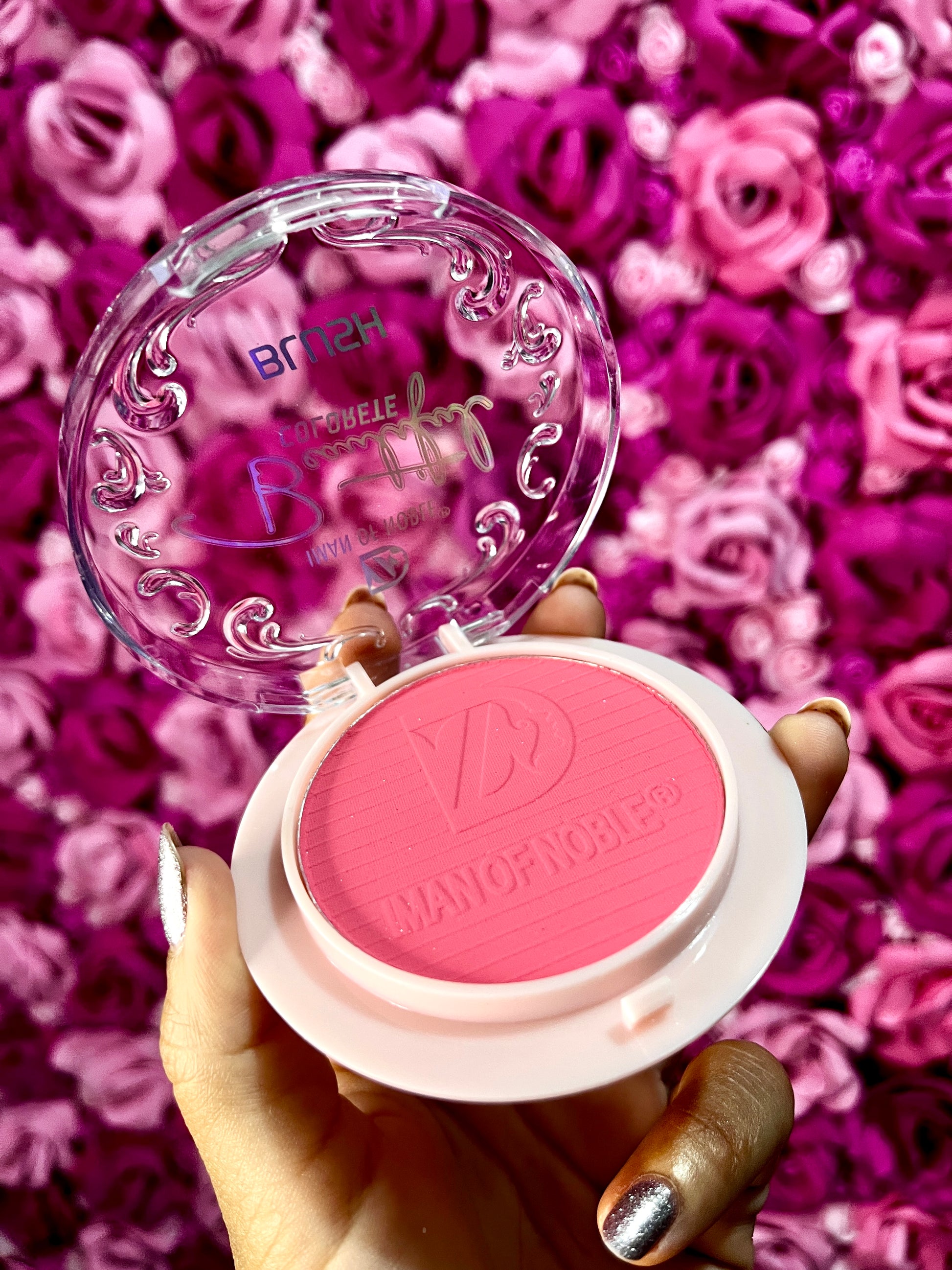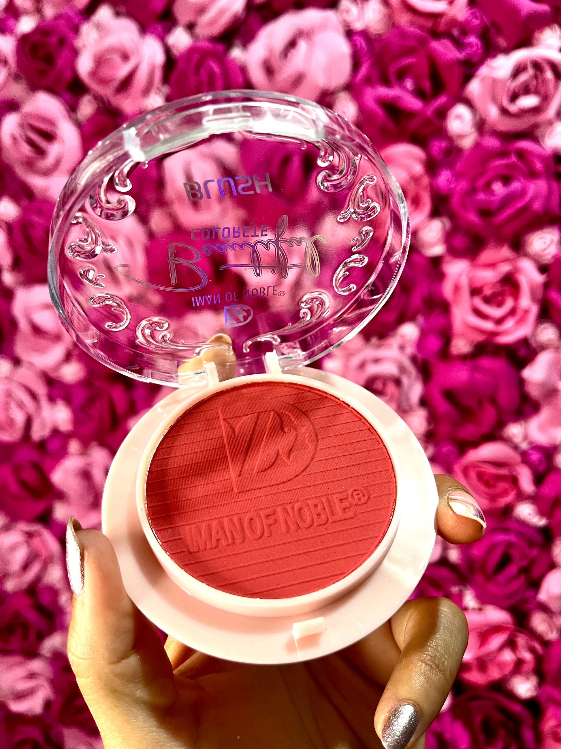 Rubor en polvo de alta pigmentación, textura suave y acabado aterciopelado.